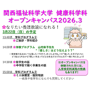 NEW 学科情報 健康【健康科学科】3月22日オープンキャンパスの健康科学科スケジュールを公開します!