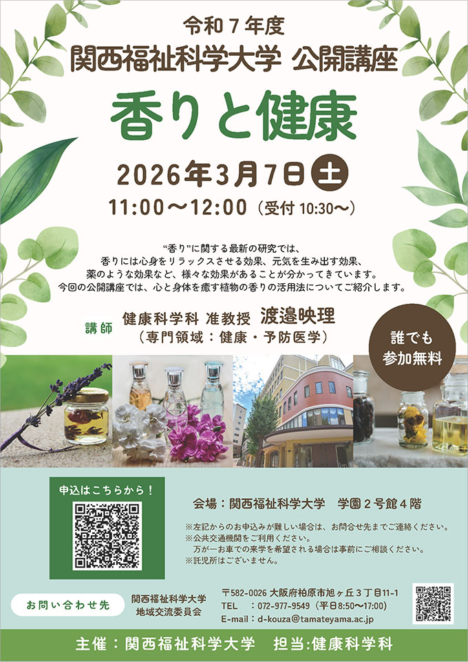 健康科学科による公開講座「香りと健康」を開催いたします。