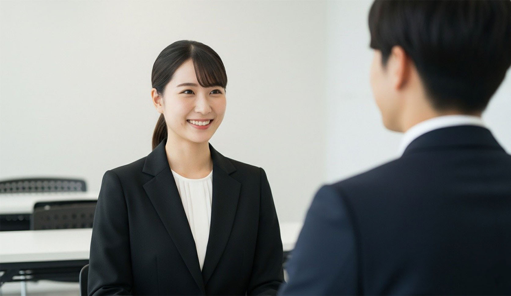 面接や、目上の人と話すような少しフォーマルな場では、相手への敬意を示すためにも丁寧な言葉づかいが不可欠です。まずは基本となる「はい」「〜です」「〜ます」を徹底することから始めましょう。