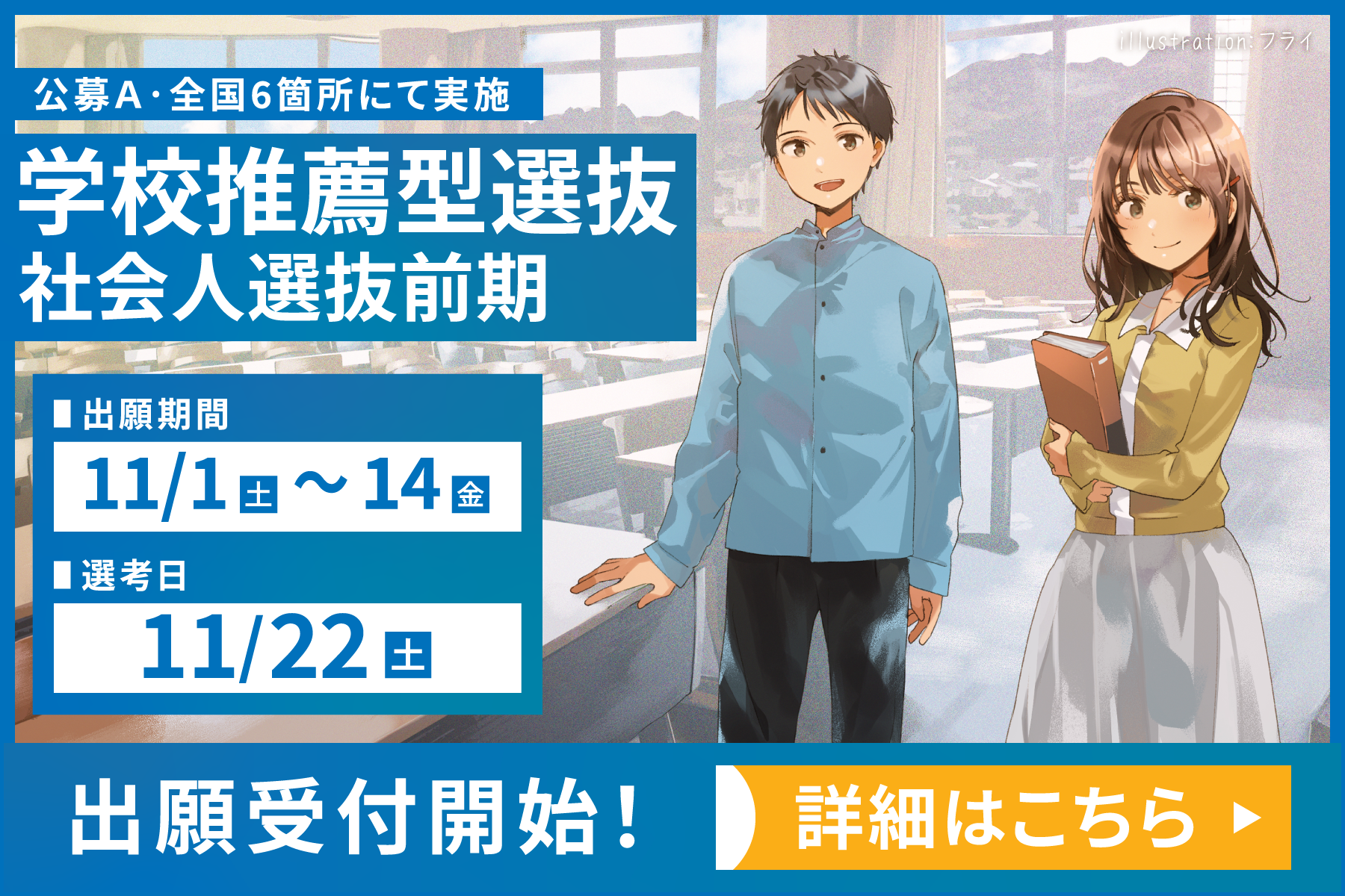 11/1(土)より学校推薦型選抜(公募A)、社会人選抜(前期)の出願受付を開始します!
