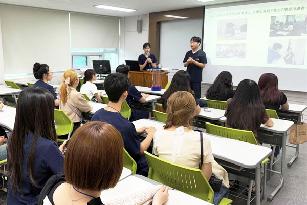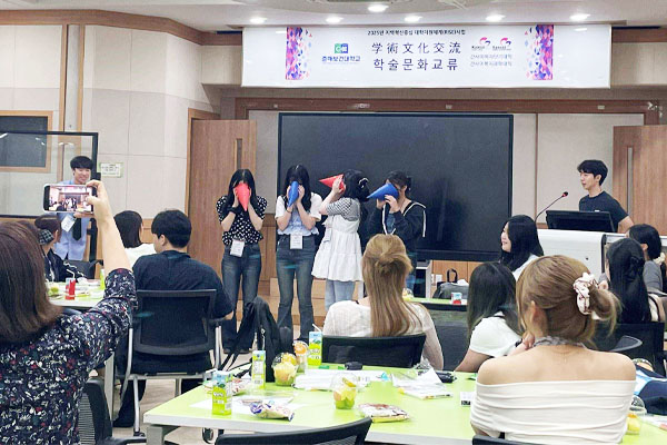 二日目は韓国蔚山(ウルサン)市にある春海保健大学校へ訪問し、学科見学や学生交流を行いました。学科見学では、放射線科における妊婦向けのエコー検査機器など、特色ある設備を多数ご紹介いただきました。学生交流では、春海保健大学の学生たちが用意してくれたゲームを実施し、楽しい時間を過ごしました。