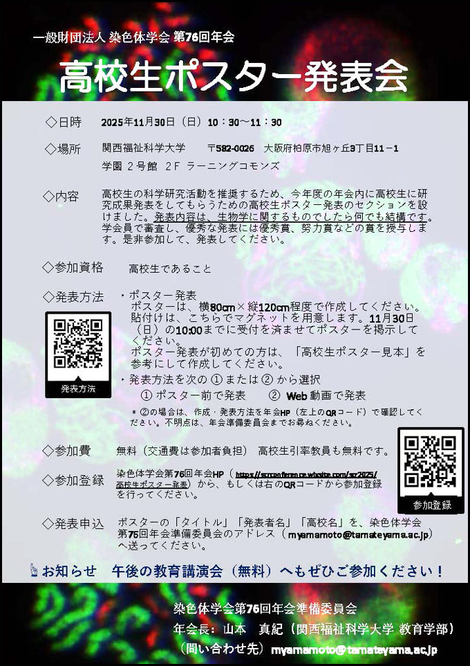 公開講演や高校生によるポスター発表等もございますので興味がある方は是非ご参加ください。
