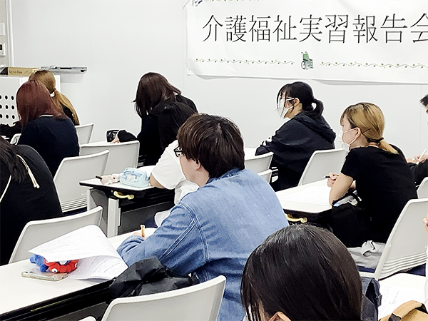 施設にはそれぞれ特徴があり、他の学生の発表を聞くことで、新たに学ぶことも多くあったようです。1年生は、2月に配属される初めての実習に向けて、先輩たちの発表を真剣に聞いて勉強していました。