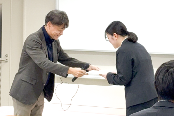 報告内容やプレゼンテーションの構成、スライドの工夫、質疑応答への姿勢などを総合的に評価し、特に優れた発表を行った学生には「優秀演題」として表彰を行いました。