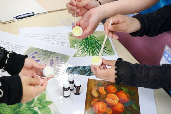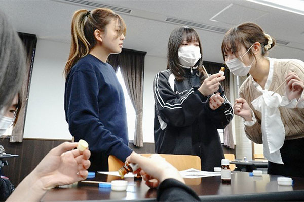 健康科学科では、香りを使った癒しの空間づくりについても取り組んでいます。