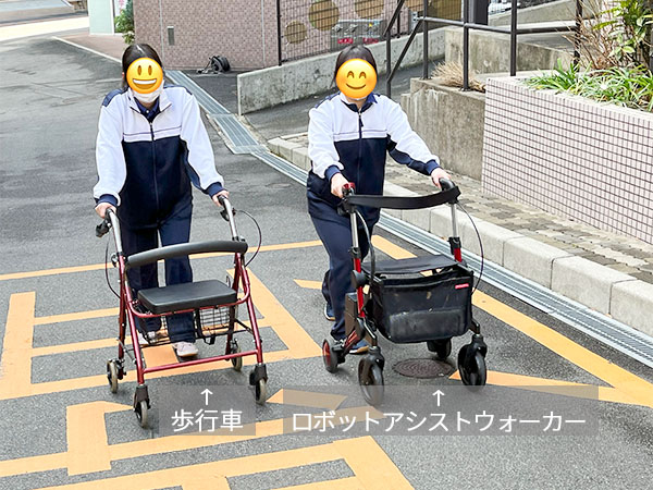 - ・普通の歩行車は振動が大きく、坂を下りているときに、坂に流されるように斜めに曲がってしまったが、ロボットアシストウォーカーは振動も少なく、速さも制御してくれるため、とても歩きやすかった。