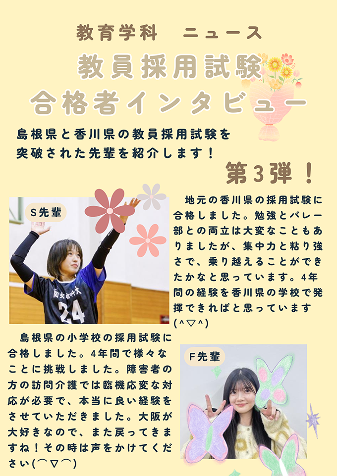 関西福祉科学大学 HOME > 新着情報 > 2026年 新着情報 > 【教育学科】教員採用試験 合格者のインタビュー③