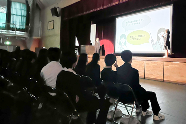 2025年3月18日(水)兵庫県立夢野台高校(神戸市長田区)において、教育・心理類型で学ぶ生徒たちによる「類型発表会」が行われました。夢野台高校の教育・心理類型は、教職や心理専門職を目指す生徒たちが、実際の教育現場(幼稚園・子ども園、小学校等)での実習や海外(オーストラリア)研修、学内講座の受講などを通して体験的・実践的に学ぶカリキュラムが組まれています。本学からは、高大連携室が窓口となり、1/26(月)に心理科学部の多田教授による「心理学を仕事で活かすには?」というテーマの出張講義を実施し、教育・心理類型の生徒さんの教育に携わらせていただきました。「類型発表会」はその学びの1年間の集大成を発表する場であり、生徒さんたちは寸劇やクイズ等も交えて、類型プログラムで学んだ成果や今後深めたい学びについて力強く発表されている姿が印象的でした。