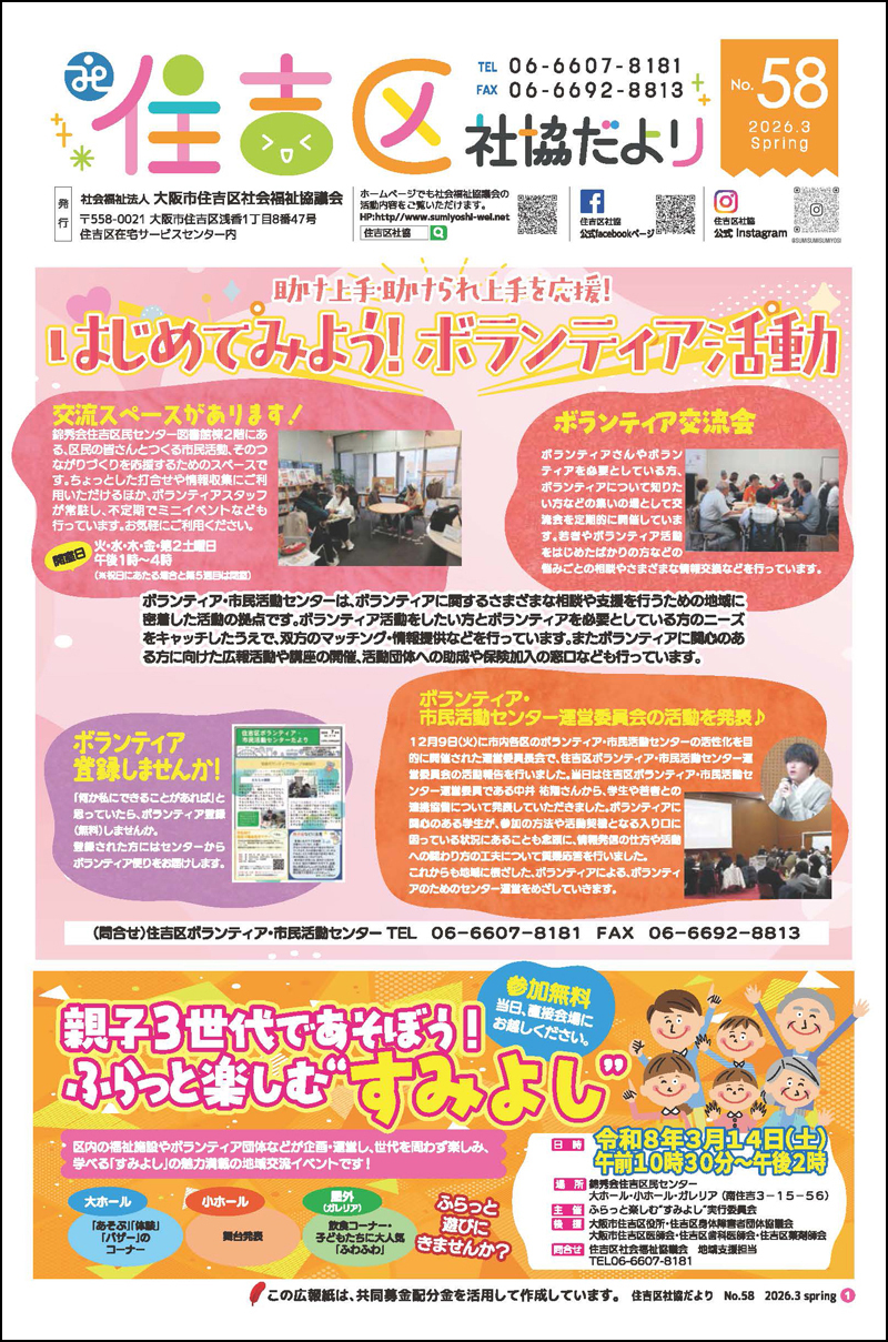 興味のある方は、活動報告を載せていますので、住吉区社協だよりをご覧ください。